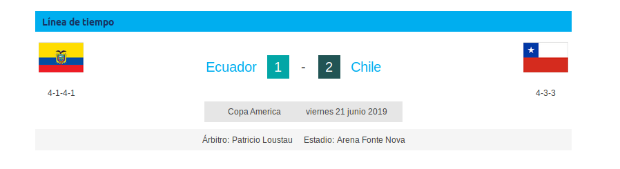 La Selección de Chile clasificó este viernes 21 de junio a los cuartos de final de la CONMEBOL Copa América Brasil 2019, tras vencer 2-1 a Ecuador en el estadio Arena Fonte Nova de Salvador, en la segunda fecha del Grupo C.